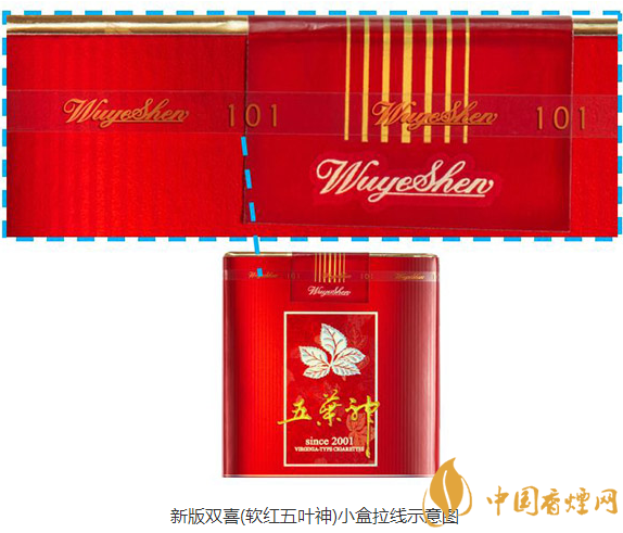 3、小盒改為軟包硬化包裝;小盒拉線改為帶“wuyeshen101”字樣的金色鐳射拉線。