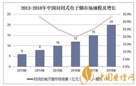 據(jù)統(tǒng)計(jì),2018年中國封閉式電子煙市場規(guī)模約20億元,同比增長33.3%。