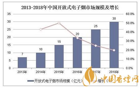 據(jù)統(tǒng)計(jì),2018年中國開放式電子煙市場規(guī)模為30億元,同比增長20%。