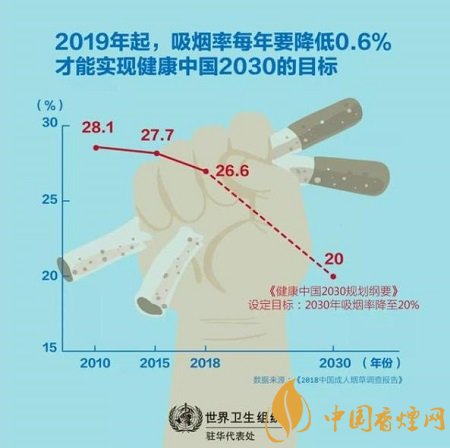 這是中國政府發(fā)布的首個(gè)面向人群、以多部門協(xié)作的形式應(yīng)對非傳染性疾病風(fēng)險(xiǎn)因素的健康戰(zhàn)略?!督】抵袊袆印反_定了國家將重點(diǎn)關(guān)注的15個(gè)專項(xiàng)行動,以提高全民健康水平、推進(jìn)實(shí)現(xiàn)健康中國目標(biāo)。煙草控制是第四個(gè)專項(xiàng)行動,用以實(shí)現(xiàn)到2030年將成人吸煙率降低到20%的目標(biāo)。這體現(xiàn)了中國對可持續(xù)發(fā)展目標(biāo)和世界衛(wèi)生組織《煙草控制框架公約》的承諾。然而,中國的煙草控制仍然面臨許多挑戰(zhàn)。2018年中國成人煙草調(diào)查顯示,15歲及以上人群的吸煙率仍然很高,達(dá)26.6%。