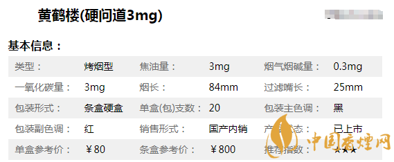3、黃鶴樓(硬問道3mg) 84mm 硬盒 20 8mg ¥80