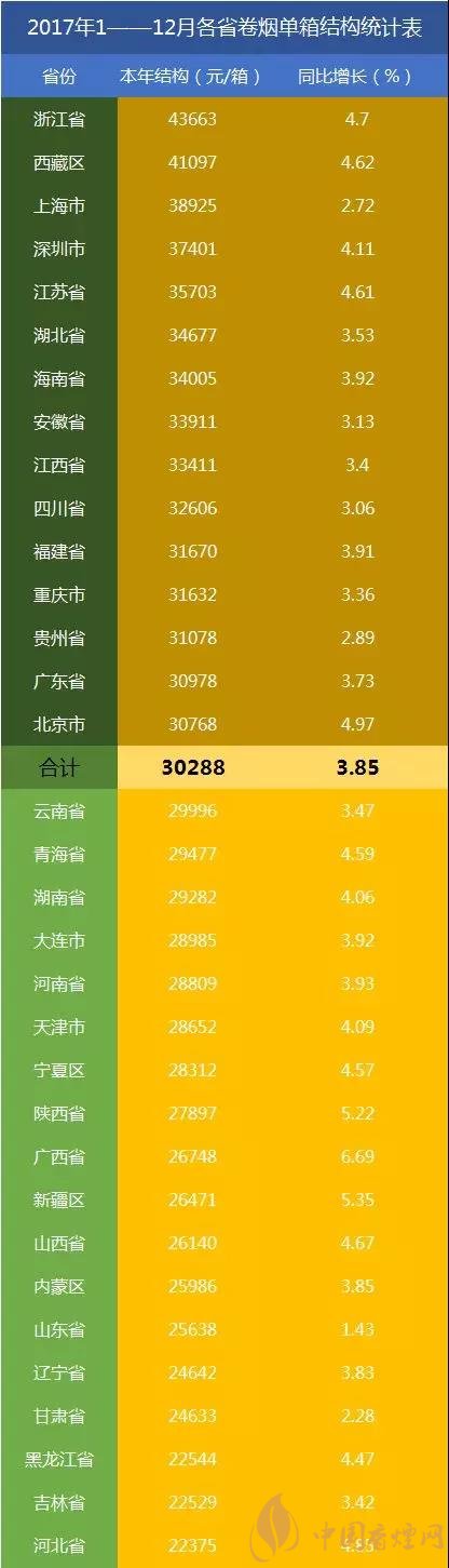 最新全國卷煙消費(fèi)水平,雖然很多地區(qū)的卷煙單箱結(jié)構(gòu)可能低于全國水平,但是在“提結(jié)構(gòu)”上的努力也是不容忽視的。#p#副標(biāo)題#e#