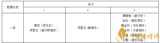 一類價位細(xì)支煙綜合質(zhì)量排名如下: