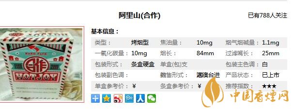 阿里山合作香煙參數(shù)信息