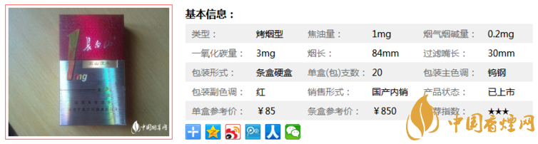 我們對(duì)于這款長(zhǎng)白山香煙價(jià)格表的了解以及有了新的層次了,下面來(lái)了解一下它的基本參數(shù)。