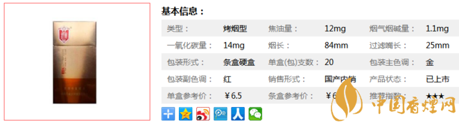 | 煙長(zhǎng):84mm | 過(guò)濾嘴長(zhǎng):25mm | 包裝形式:條盒硬盒 | 單盒(包)支數(shù):20 |