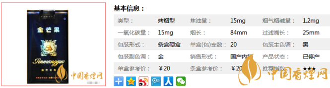 三、金芒果盛世金典香煙參數(shù)