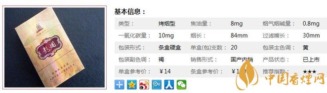 | 煙長(zhǎng):84mm | 過(guò)濾嘴長(zhǎng):30mm | 包裝形式:條盒硬盒 | 單盒(包)支數(shù):20 |