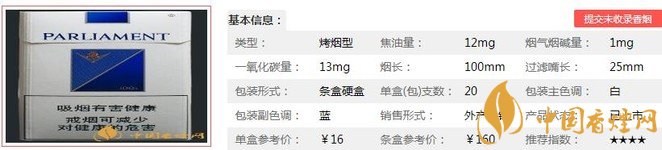 三、百樂門藍(lán)香煙參數(shù)