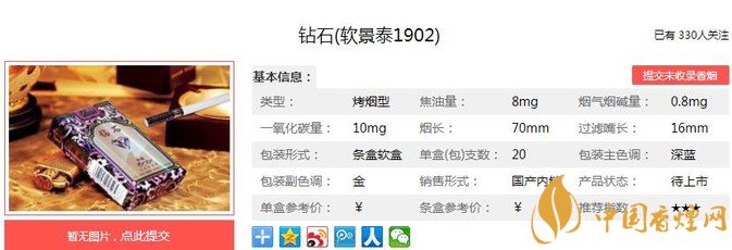 鉆石硬藍(lán)新一代價(jià)格及參數(shù) 鉆石低檔位代表性香煙