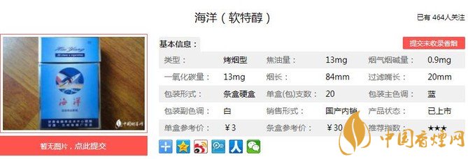 一、海洋軟特醇香煙價格