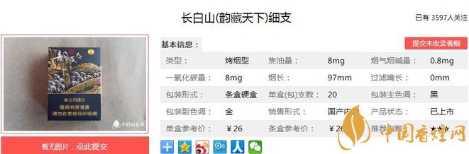 三、長白山韻藏天下細支香煙參數(shù)