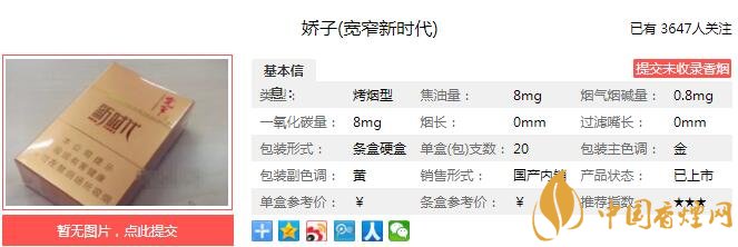 以上便是由香煙網(wǎng)小編為大家介紹的關(guān)于嬌子寬窄新時(shí)代多少錢一包 嬌子寬窄新時(shí)代口感及參數(shù)介紹的相關(guān)信息,想要了解更多有關(guān)內(nèi)容請(qǐng)點(diǎn)擊:長白山天韻多少錢一包 長白山天韻口感及參數(shù)介紹