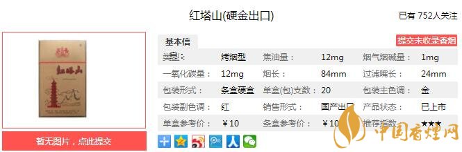 紅塔山硬金出口價(jià)格 紅塔山硬金出口口感及參數(shù)介紹