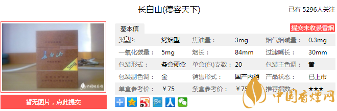 以上便是由香煙網(wǎng)小編為大家介紹的關于長白山德容天下多少錢一包 長白山德容天下口感及參數(shù)分析的相關信息,想要了解更多有關內(nèi)容請點擊:黃山新視界煙多少錢一盒 黃山新視界口感及參數(shù)介紹