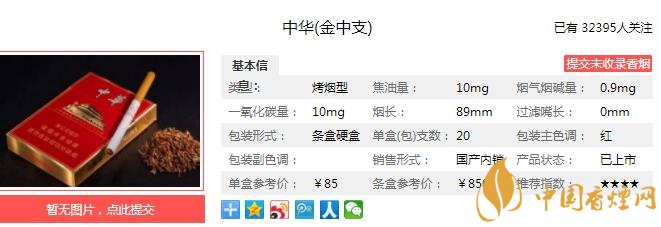 在原料上中華(金中支)堅持中華系列產(chǎn)品一貫的原料精挑原則,秉承中華復合型“多地區(qū)、小比例”的原料配方理念形成葉組配方。中華(金中支)傳承經(jīng)典風格,中和平衡,綜合提升了中華(金中支)的品質(zhì)體驗。經(jīng)香煙網(wǎng)小編市場調(diào)查中華金中支售價為85元/包。