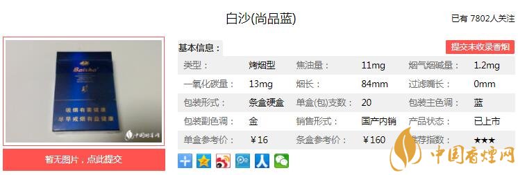 三、白沙尚品藍(lán)香煙參數(shù)