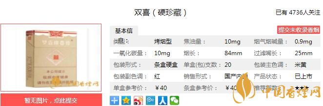 三、雙喜硬珍藏香煙參數(shù)