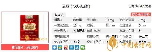 三、云煙軟珍紅鉆香煙參數(shù)
