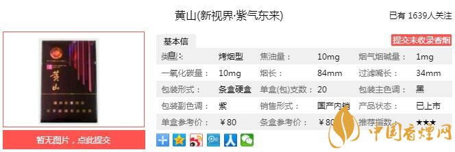 三、黃山新視界紫氣東來香煙參數(shù)