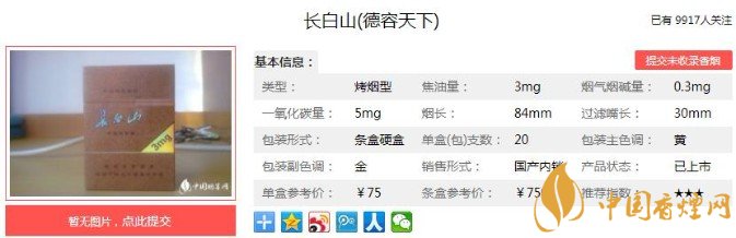 以上便是香煙網(wǎng)小編為大家介紹的關(guān)于長白山德容天下價格75元一包,復(fù)古的包裝才是亮點!的相關(guān)信息,看完之后大家是不是對于長白山(德容天下)的相關(guān)信息更加了解呢。大家還想查詢更多的相關(guān)內(nèi)容歡迎點擊:長白山天韻多少錢一包 長白山天韻口感及參數(shù)介紹