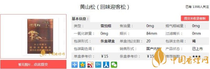 以上便是香煙網(wǎng)小編為大家介紹的關(guān)于黃山松香煙多少錢 黃山松回味迎客松價格及圖片分析的相關(guān)信息,大家看完之后是不是對于黃山松(回味迎客松)的相關(guān)信息更加了解呢,想要了解更多內(nèi)容歡迎點擊:黃山松回味迎客松 機(jī)制雪茄式卷煙口感測評