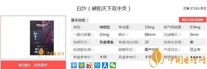 以上便是香煙網(wǎng)小編為大家介紹的關(guān)于白沙和天下香煙價格及圖片 白沙硬和天下雙中支90元一包的相關(guān)信息,看完之后大家是不是對于白沙(硬和天下雙中支)這款香煙的相關(guān)信息更加了解呢。大家還想查詢更多的相關(guān)內(nèi)容歡迎點擊:兩次改良終成精品,白沙硬精品三代價格15元一包!