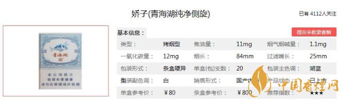 以上便是香煙網(wǎng)小編為大家介紹的關(guān)于青海湖多少錢(qián)一包 青海湖純凈側(cè)旋香煙價(jià)格及圖片介紹的相關(guān)信息,看完之后大家是不是對(duì)于嬌子(青海湖純凈側(cè)旋)這款香煙的相關(guān)信息更加了解呢。大家還想查詢(xún)更多的相關(guān)內(nèi)容歡迎點(diǎn)擊:嬌子青海湖天空之鏡的價(jià)格 煙嘴鏤空六邊形設(shè)計(jì)新穎