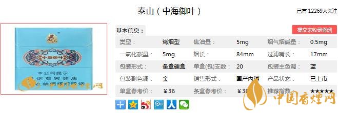 泰山中海御葉香煙價(jià)格及圖片 高性價(jià)比的細(xì)支低焦香煙