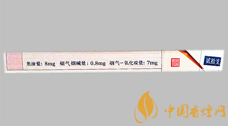 類型 :烤煙型 焦油量 :8mg 煙氣煙堿量 :0.8mg 一氧化碳量 :7mg