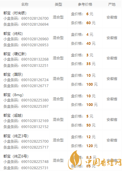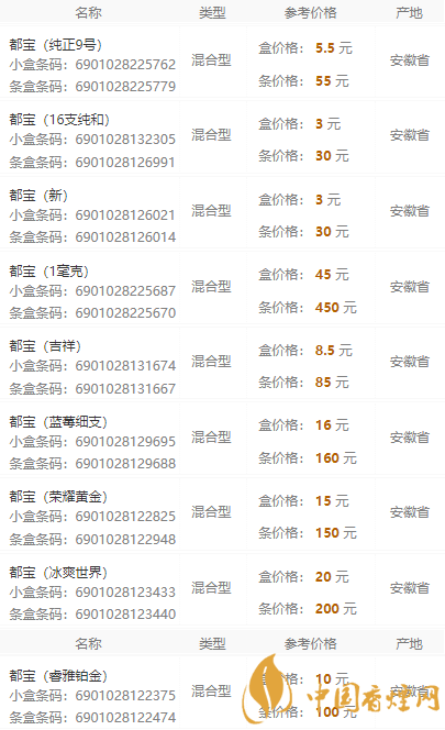 2020都寶香煙價(jià)格表圖