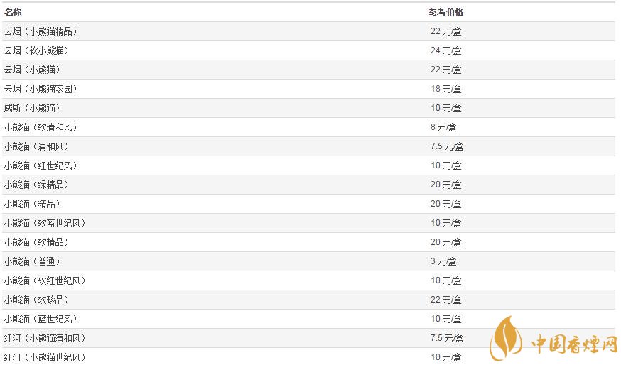 2020小熊貓香煙價(jià)格表一覽
