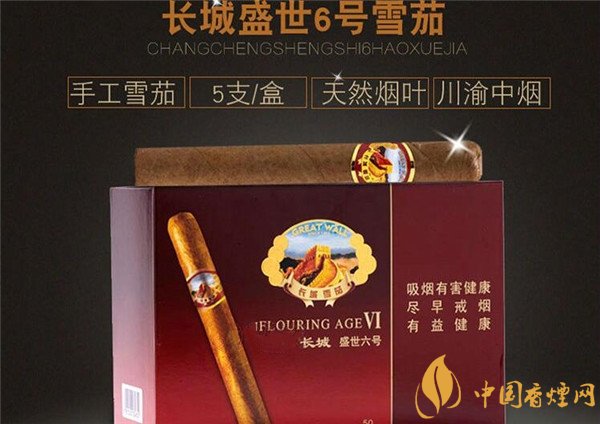 長城雪茄煙盛世6號秉承了長城當盛世5號的包裝色系,主色系采用艷麗的酒紅,輔助副色系為金色,看上去一樣的喜慶的貴氣。長城雪茄煙多少錢一包,接下來香煙網(wǎng)小編將為大家介紹長城雪茄煙價格表和圖片。