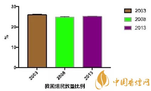 研究結(jié)果顯示,2003年,2008年以及2013年我國(guó)的煙民比例分別為26.0%,24.9%,25.2%,始終高居不下。2003年,男性煙民的數(shù)量相對(duì)較高(48.4%)。女性群體的煙民比例則相對(duì)較低(3.1%)。