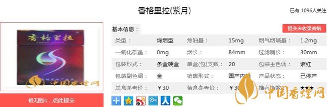 一、香格里拉紫月香煙價(jià)格