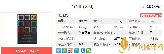 一、黃金葉大M香煙價(jià)格
