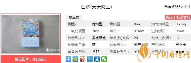 白沙(天天向上)名字很勵(lì)志,符合年輕人的消費(fèi)特點(diǎn),比較受青年消費(fèi)者的推崇,包裝很漂亮很新潮,讓人看了有一種積極向上的感覺,在市場上賣得不錯(cuò)。下面就由香煙網(wǎng)小編帶大家一起來了解白沙天天向上的相關(guān)信息。