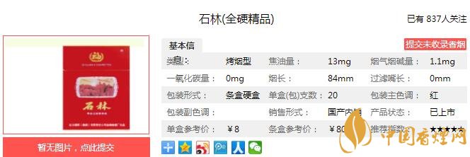 石林全硬精品是石林品牌系列的高品位卷煙。該產(chǎn)品繼承和發(fā)揚(yáng)了“石林”牌系列卷煙的有毒,自然優(yōu)雅,煙氣飽滿綿長,煙氣醇和的,口感和余味更加干凈舒適,香氣越來越細(xì)膩柔和。只可惜目前這款石林全硬精品已經(jīng)停止生產(chǎn),市面上已經(jīng)很少見了。