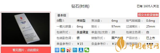 三、鉆石時(shí)尚香煙參數(shù)