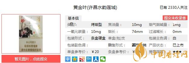 一、黃金葉許昌水韻蓮城香煙價格