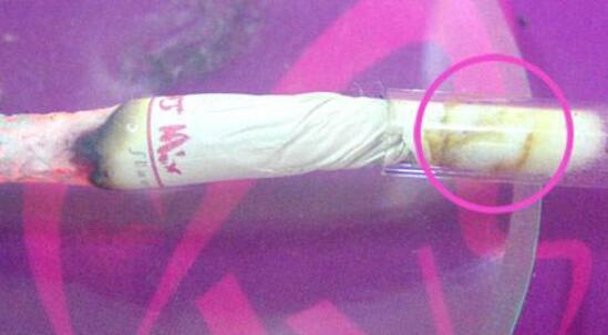 1,首先我們利用吸氣裝置將煙氣的粒相成分(包括焦油、尼古丁、水)收集于棉花團(tuán)上,此時(shí)棉花局部就變黃變褐了,那就是收集到的總粒相物(見下圖1);