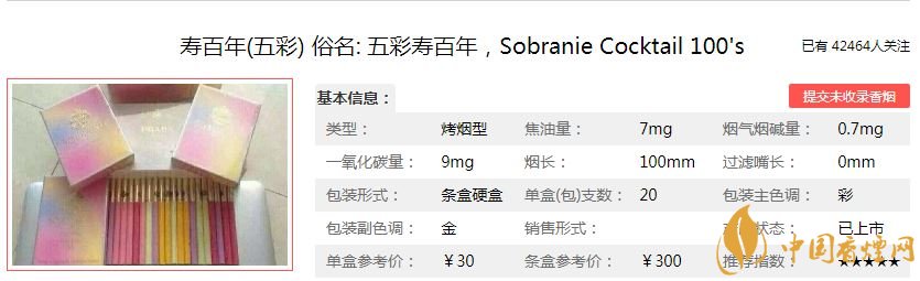 壽百年(五彩香煙價(jià)格參數(shù):