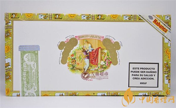 外觀上論及這款古巴雪茄煙羅密歐寬丘吉爾怎么樣,羅密歐寬丘吉爾雪茄傳承了羅密歐與朱麗葉品牌一貫的設計風格,和短丘吉爾一樣采用精致木盒裝,盒體相對要細長些。運用經典的羅密歐與朱麗葉圖像作為LOGO設計,LOGO色彩運用十分豐富,人物生動而具靈氣。整體包裝設計為白色為主,黃色為輔,黃色印花添加了鑲邊設計,向世人充分展示了它十足的貴氣,外盒上貼有專用的防偽標識。盒四邊印花設計,將整體外觀設計點綴上檔次又顯時尚。