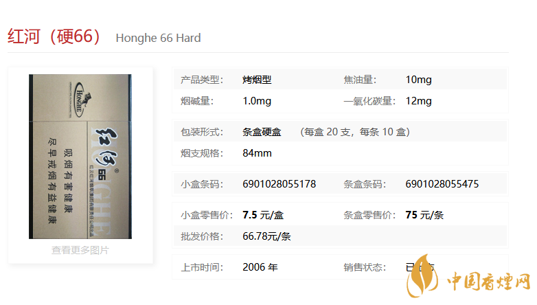 紅河硬66香煙基本信息