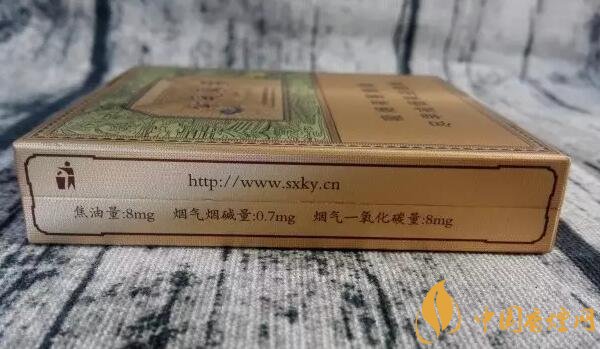 類型 :烤煙型 焦油量 :8mg 煙氣煙堿量 :0.7mg 一氧化碳量 :8mg