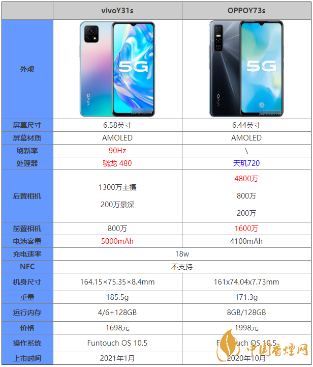 vivoy31s配置 vivoY31s和iQOOU1x對(duì)比