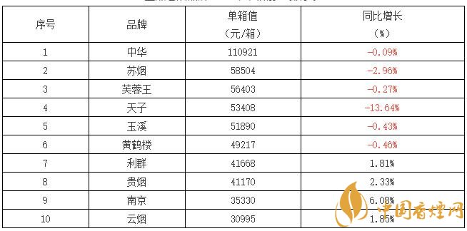 2017全國銷量第一的香煙((單箱) 2017中國銷量最好的煙排行榜表