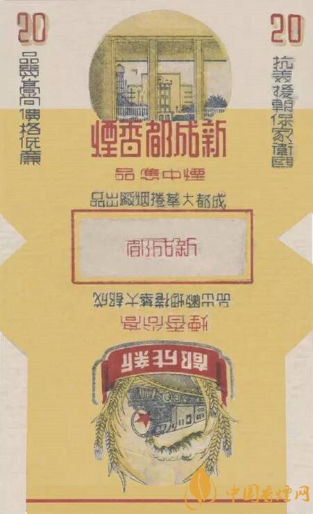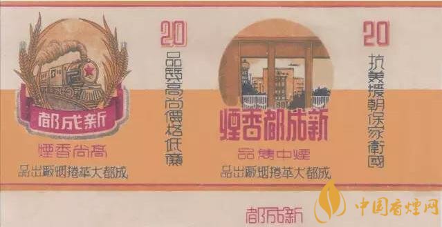 “新成都”煙標(biāo)其主圖是新投入營運(yùn)的成都火車站,副圖是一列火車奔馳在新竣工通車的成渝線上,并印有“抗美援朝 保家衛(wèi)國”、“品質(zhì)高尚 價格低廉”等字樣,既展現(xiàn)了新時代、新成都、新面貌,也代表了當(dāng)時包含大華卷煙廠在內(nèi)的整個川煙工業(yè)的家國情懷。