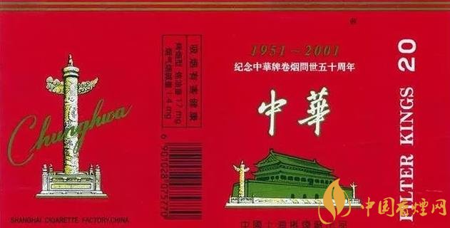1.二十一世紀(jì):2001年,為紀(jì)念中華牌卷煙問(wèn)世五十周年,金色的“1951-2001”年號(hào)非常顯眼,特制(20支全開(kāi)式硬卡)這也是全開(kāi)式中華首次問(wèn)世。