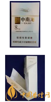 中南海(金8mg)由上海煙草(集團(tuán))公司北京卷煙廠生產(chǎn),卷煙規(guī)格為(25+59)mm×24.6mm。
